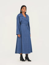 This co-ord set brings together two impeccably crafted silhouettes—an A-line princess-seamed dress and a long trench jacket—creating a look that is timeless, structured, and quietly opulent.