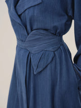 Together, the two pieces form a harmonious ensemble: the softness of the dress meeting the structure of the trench, the fluidity of cotton meeting the sharpness of precise tailoring. Every detail—from the hand-finished edges to the naturally dyed, handwoven cotton—echoes the brand’s deep respect for craftsmanship, subtle luxury, and sustainability.